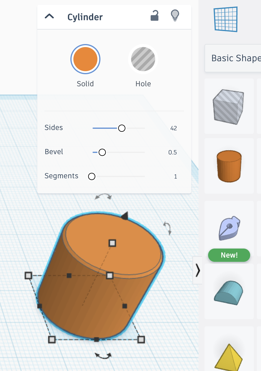 The next step up the difficulty curve is Tinkercad. After logging in, click the + Create button to start a new design.